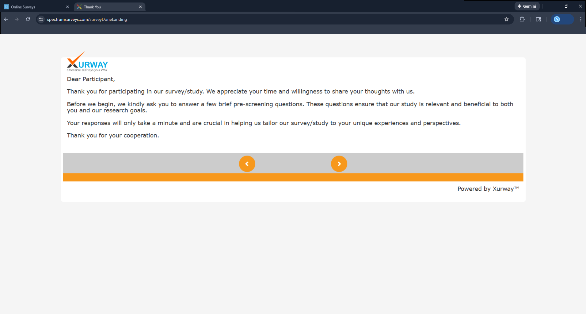 Before you start a survey, you will take a prescreener survey. This asks questions to see if you meet the requirements for that specific study.